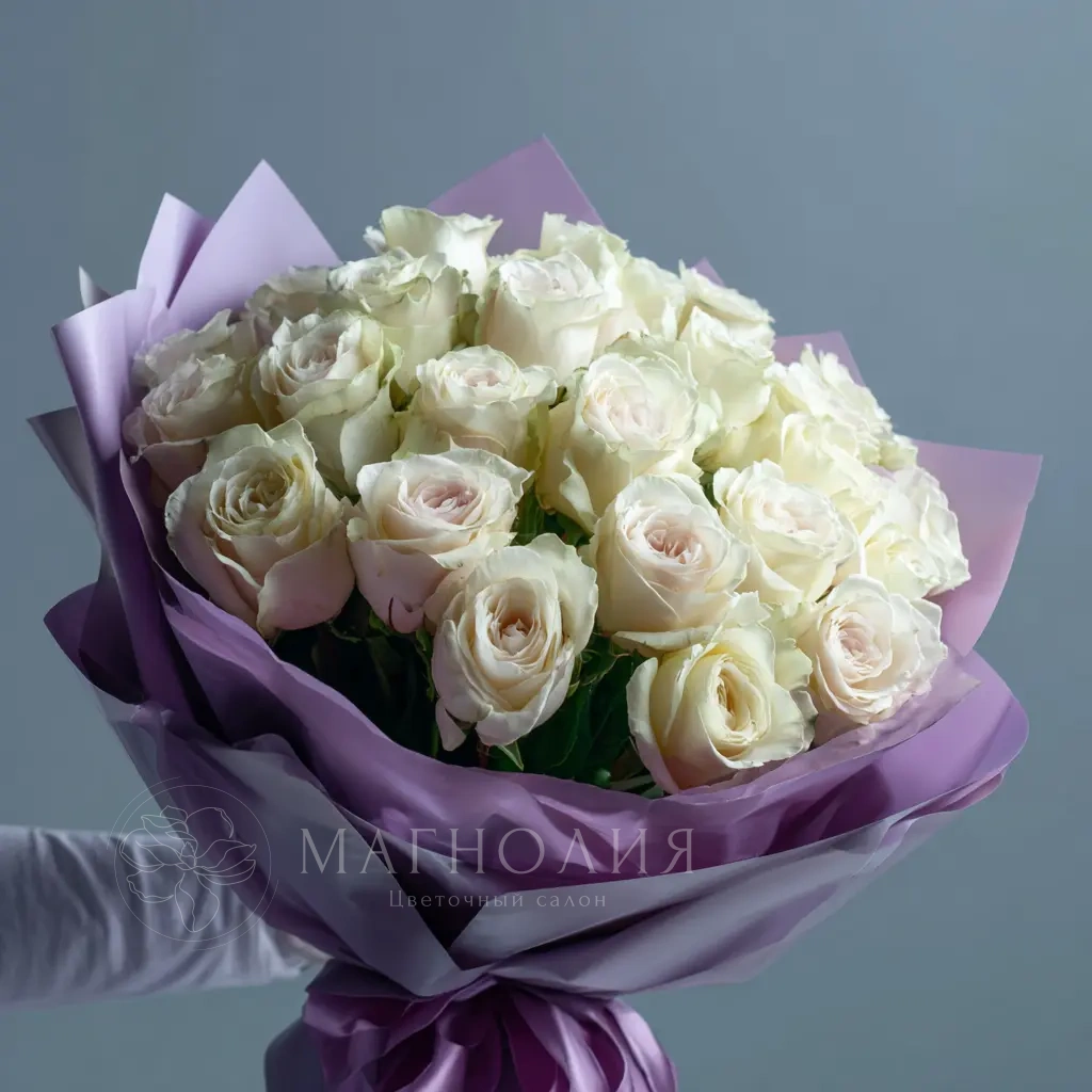 Мягкий и тёплый букет, навеянный атмосферой вечернего покоя. Белые розы создают уютное и гармоничное настроение. Идеален для романтического жеста или признательности.