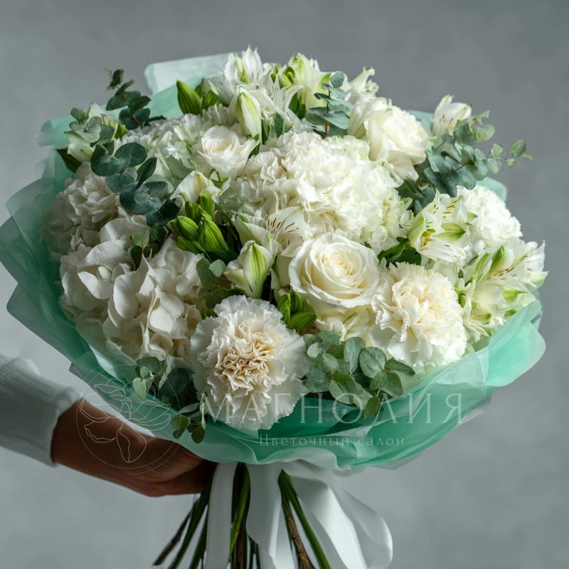 Букет с гвоздиками «Белый вальс»