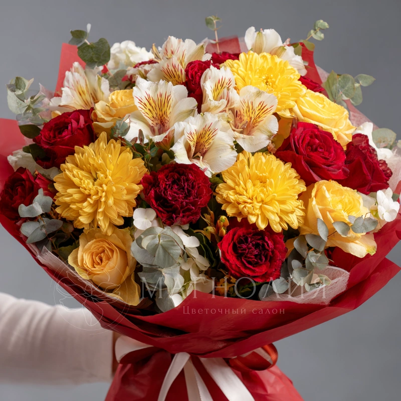 Лёгкий и нежный букет, вдохновлённый сентябрьским утром. В нём сочетаются хрупкость и лёгкость хризантем с мягкой осенней цветовой палитрой. Подойдёт для первых осенних поздравлений.